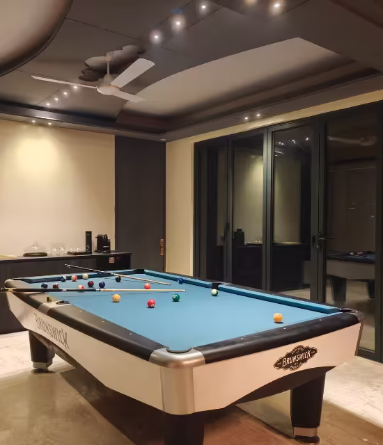 The lounge offers a stylish, welcoming atmosphere with soft lighting, comfortable seating, and thoughtfully planned zones for gaming, swimming, and socializing. Whether it’s a casual hangout, a small celebration, or an after-work break, every moment here feels relaxed and special.