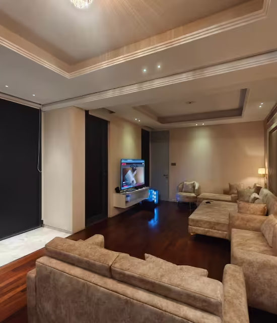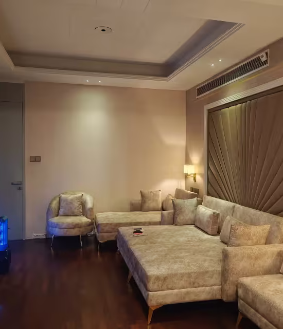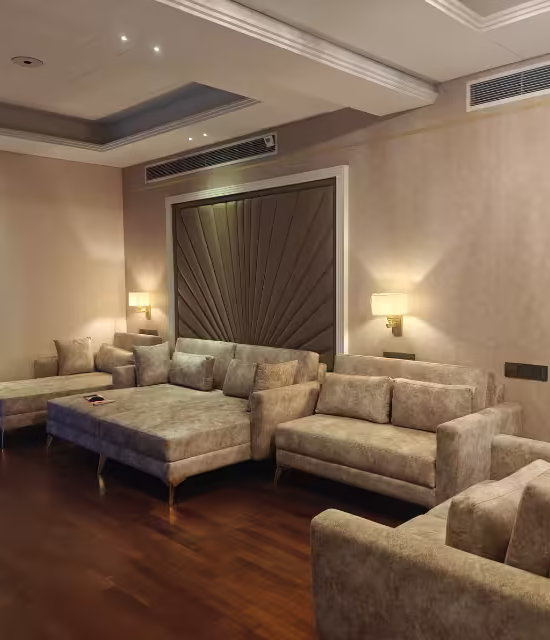 The lounge offers intimate and comfortable seating with plush sofas designed to accommodate 6 to 10 guests. The entire space is fully air-conditioned and located in a quiet, secure building, ensuring a peaceful and uninterrupted viewing experience. Adjustable LED mood lighting allows you to create the perfect ambiance for your movie night, while total privacy ensures the lounge is exclusively yours.